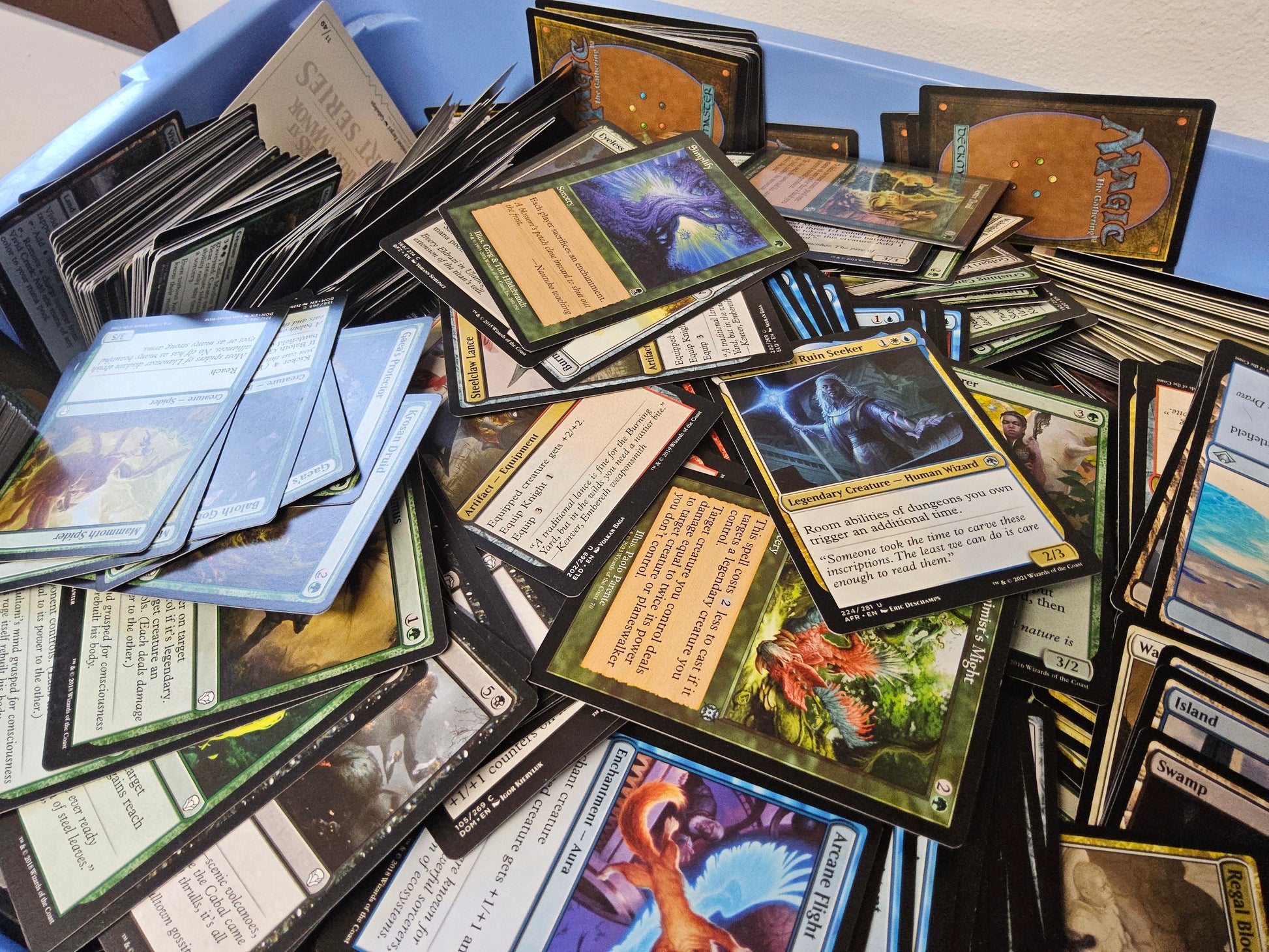 Kilon verran (Vähän yli) mtg kortteja. Joukossa saattaa olla pieni määrä token/checklist/art series/muita mainos kortteja. Sisältää pääasiassa commoneita.